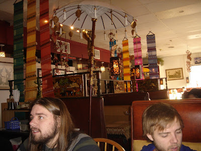 What else would be open? We went to see Black Swan, directed by a former student of my new sister-in-law. Beautiful music, interesting staging, scary effects..I liked it but I suppose most would find it too weird. Still we had plenty of time left to kill plus we were very tired as neither of us had much sleep the night before. The NY plane would not get there until 10 pm PST, which meant 1 am by our clock. Plus there was the long drive back from the airport. We visited Steve's mom, which was a risk because we were afraid that she'd spoil the surprise but she promised not to. We certainly surprised her. But still we had 4 hours to kill. I drove our rental push button car around aimlessly in the rain hoping to find something open. Finally I saw neon and parked cars! A divey neighborhood/bar/ coffee shop. Perfect! Full of people with no where else to go along with Cujo the lab and a chihuahua who walked freely through the place. A Vespa and a bicycle was parked in the middle of the dining room. There was a sign warning if you bitched how long it took to make the food, you'd be refered to the McDonald's down the streeet. I will post a picture once I return. Had some yummy tomato curry shitake soup. A nice vibe..it reminded me of our old college coop with nothing matching. The owner asked what movies we wanted to watch...the vote was for The Transformers (?).When we finally left to the airport, they all wished us Merry X-mas!