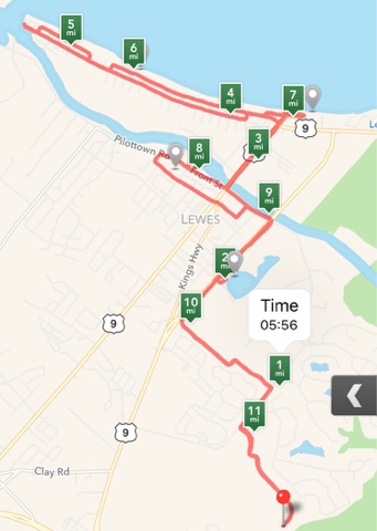 The junction breakwater trail runs zigzagging between Lewes and Rehoboth. It's about 7 miles long. I am staying closer to the Lewes side and fortunately near the section in deep woods so I can run in shade. I was told that my friend had no intention of exerting outside yesterday because of the heat so off I went by myself. A good ride